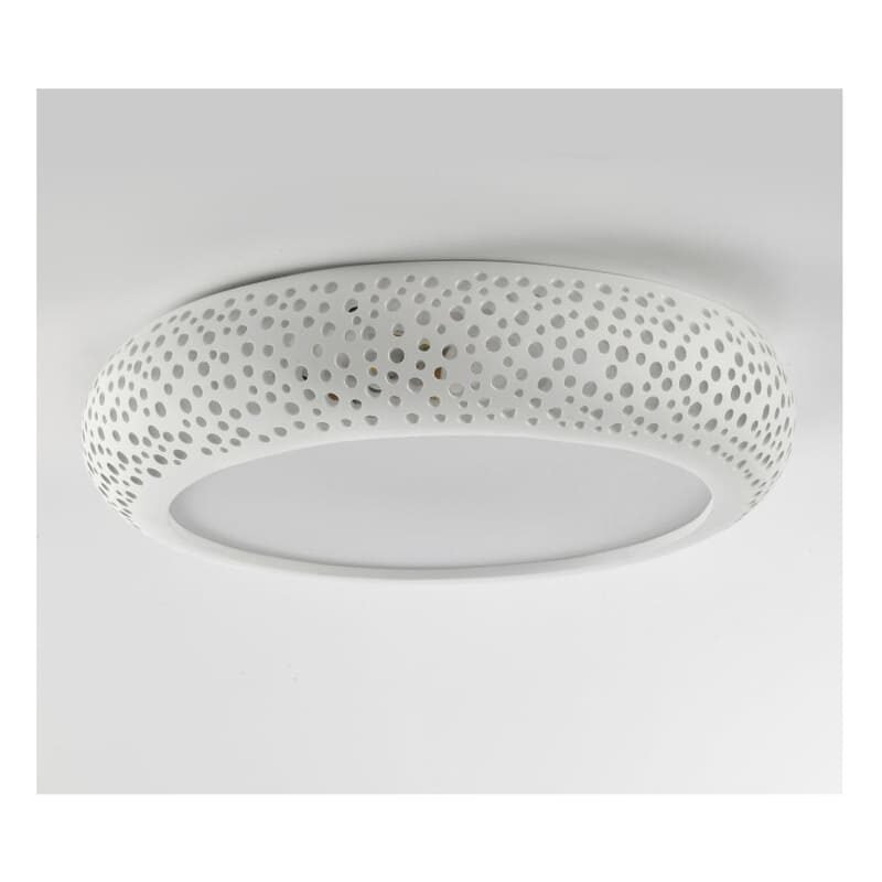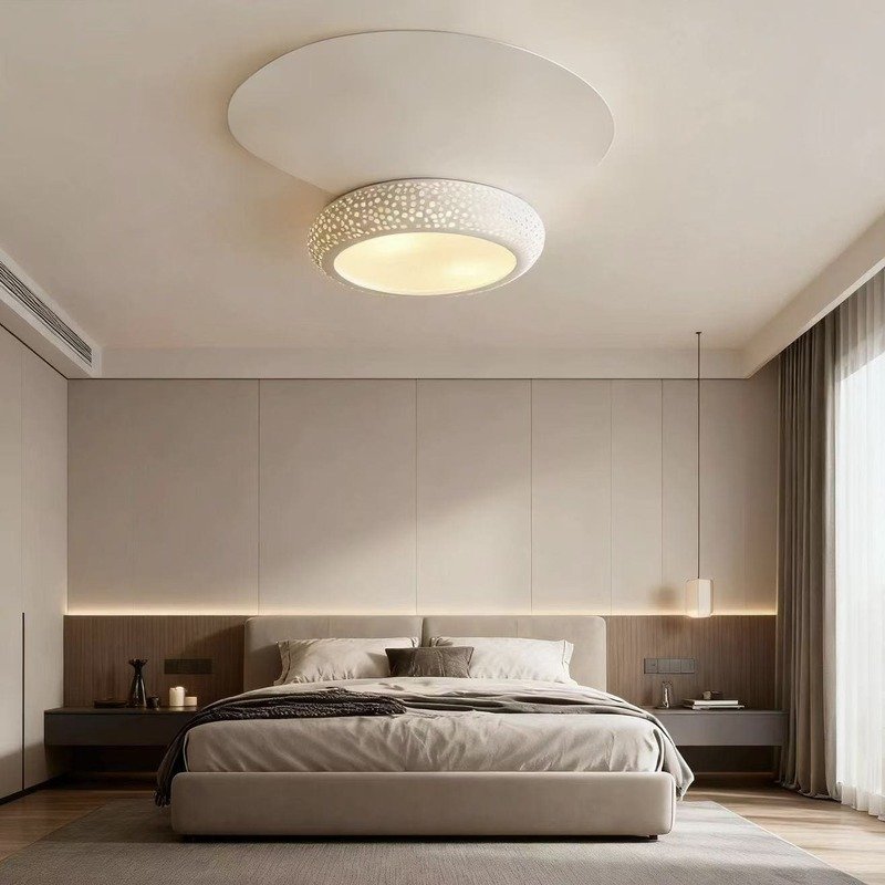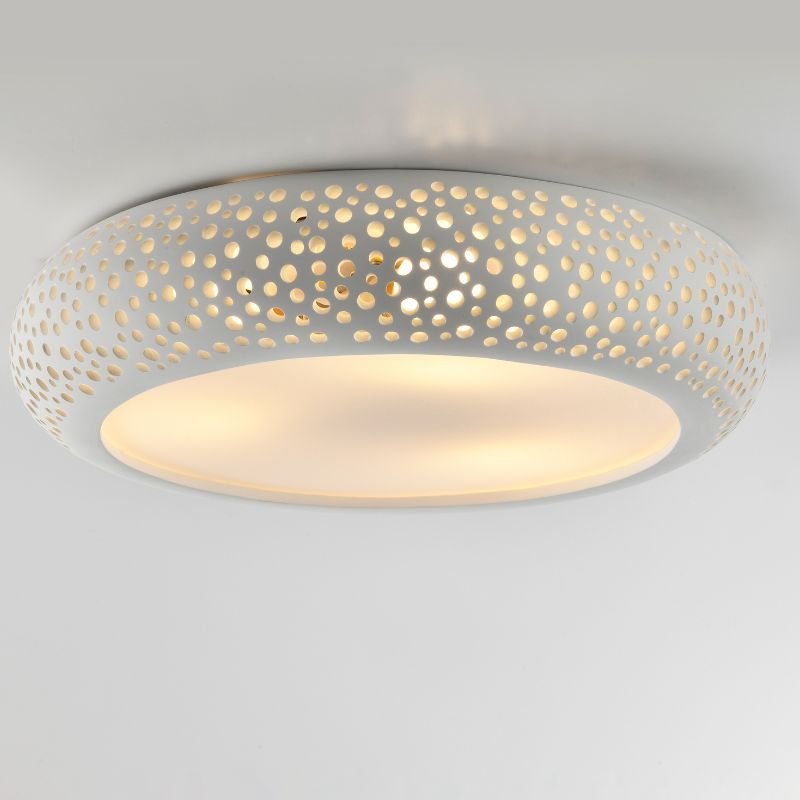 .Distinctive Circular Hollow Design: Features a circular hollow perforation pattern. Crafted from white gypsum, this ceiling lamp brings an artistic, decorative touch. The unique design stands out, enhancing interior aesthetics and adding a modern, minimalist flair to any space.