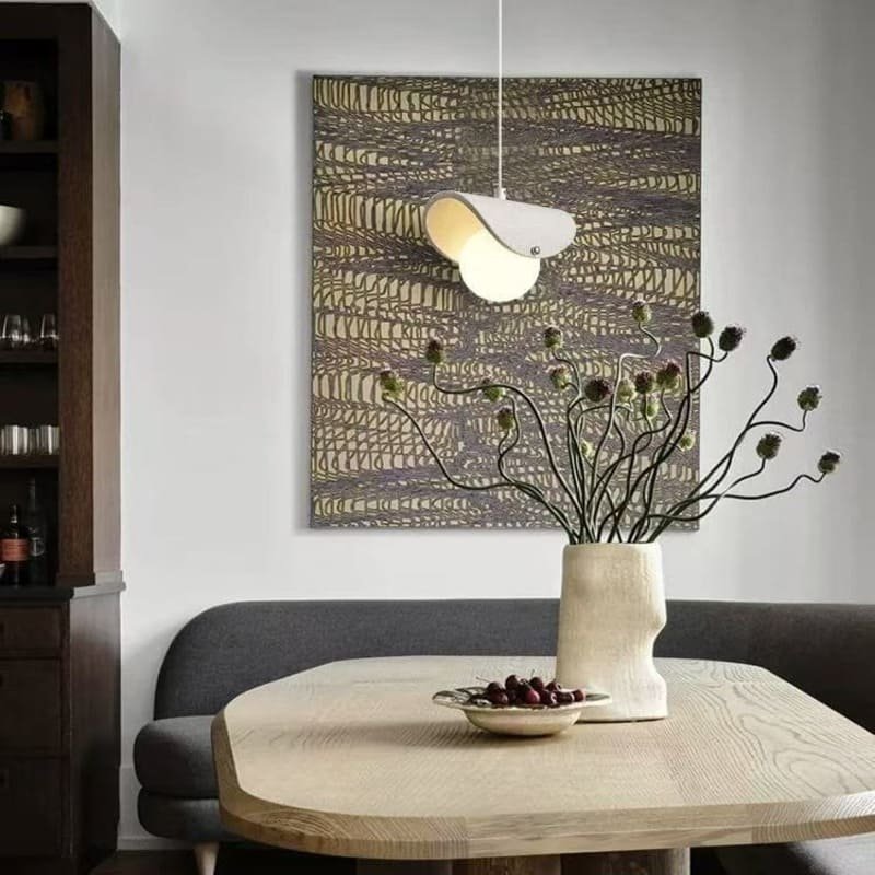.Stylish & Artistic Design: With a modern, minimalist and popular style, this pendant lamp adds artistic charm to interiors. The white, sleek – lined shape, featuring a unique two – part structure, blends fashion with art. When illuminated, it casts soft, decorative light, enhancing the roomโs ambiance as both a lighting fixture and a decorative piece.