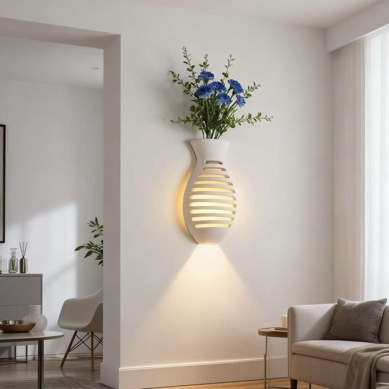 .Design & Artistry: This wall lamp features a creative vase – shaped design, blending art and functionality seamlessly. The minimalist, smooth – lined white gypsum structure acts as both a decorative vase (for flowers) and a lighting fixture. Its integrated form merges perfectly with walls, adding an artistic, space – saving decor touch to interiors.